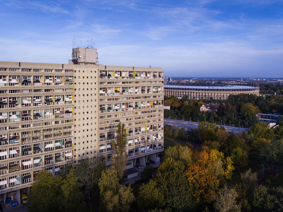 Die Unité d’Habitation „Typ Berlin“, 1957-1958 als Beitrag zur INTERBAU ’57 nach Entwürfen von Le Corbusier in der Nähe des Olympiastadions errichtet, ist ein bedeutender Bau der Berliner Nachkriegsmoderne. Nach wie vor faszinieren die kraftvolle Farbgestaltung und die besondere Erschließungsstruktur des sogenannten Corbusierhauses. Seit 1995 steht das 17-geschossige Haus mit 530 Wohnungen unter Denkmalschutz.