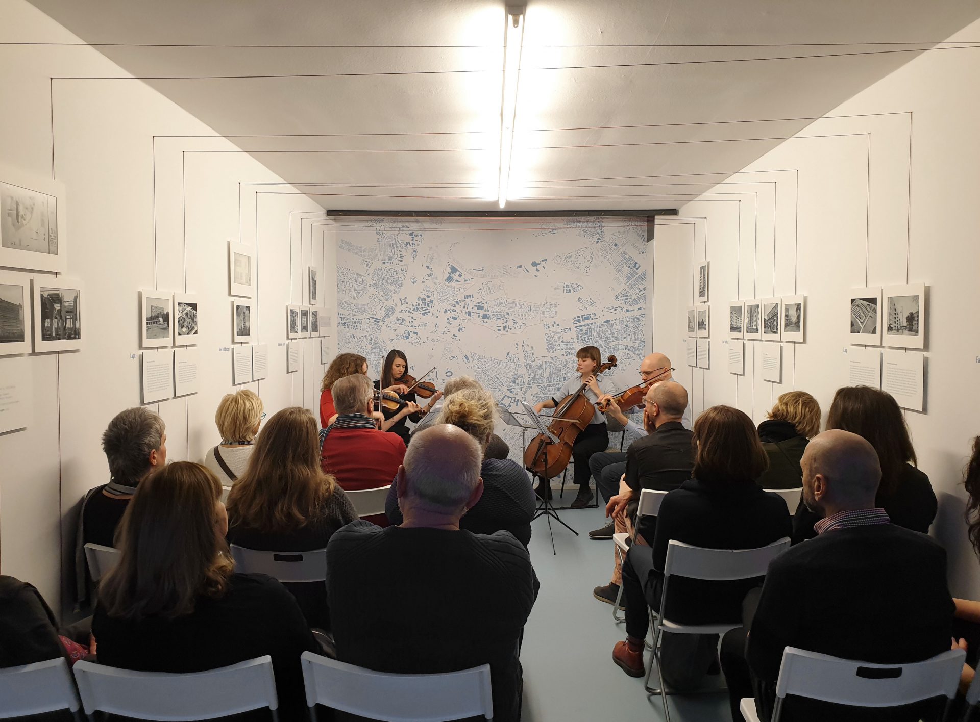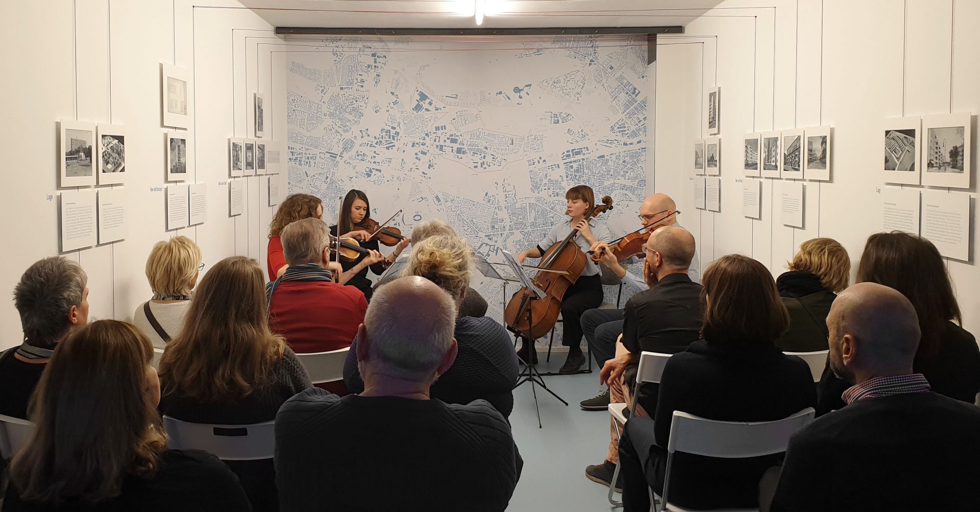 Im Rahmen des Beethoven-Jubiläumsjahres BTHVN2020 durften wir ein besonderes musikalisches Ereignis in unserer Galerie erleben. Vier talentierte Musiker:innen waren zu Gast und präsentierten das Streichquartett in D-Dur, op. 18 Nr. 3 von Ludwig van Beethoven – ein frühes Werk des Komponisten, das bereits seine charakteristische Ausdruckskraft und formale Klarheit erkennen lässt.